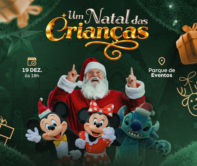 Milagres vai se encher de sorrisos, cores e emoção em uma noite pensada especialmente para quem representa o futuro da cidade. Nesta sexta-feira, dia 19, a Prefeitura de Milagres realiza Um Natal das Crianças, a partir das 18h30, no Parque de Eventos, transformando o espaço em um grande cenário de alegria, magia e convivência familiar.